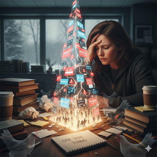 Projects stacked, notes layered, deadlines hiding beneath receipts.